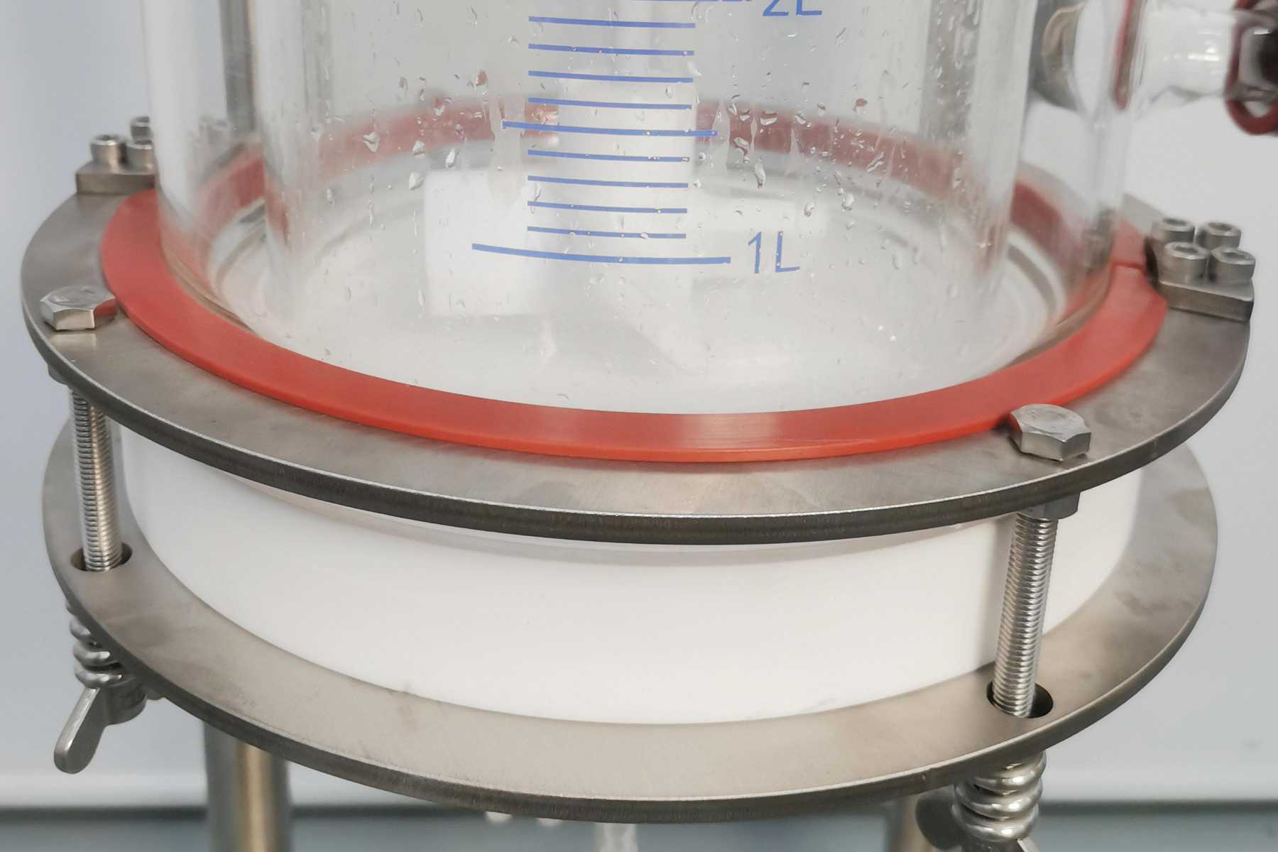 夾套包到底對干5L及以下容量的釜體來說因為本身釜內(nèi)物料較少,所以對于夾套控溫,普通法蘭邊的底部的一部分玻璃是沒有夾套的,所以控溫不到的地方物料溫度不同,可能導(dǎo)致最終實驗結(jié)果不理想或者得到的數(shù)據(jù)不準確,對于10L 及以上的等體來說是加大了過濾直徑,過濾速度快,實驗效率大大提高。