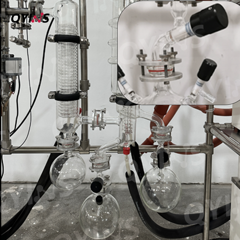 高透明度和高同心度,內(nèi)置蛇形玻璃盤管冷凝器配套316不銹鋼攪拌框,結(jié)合四氟刮條