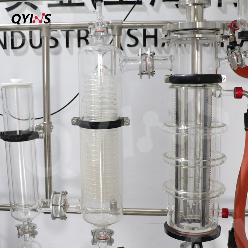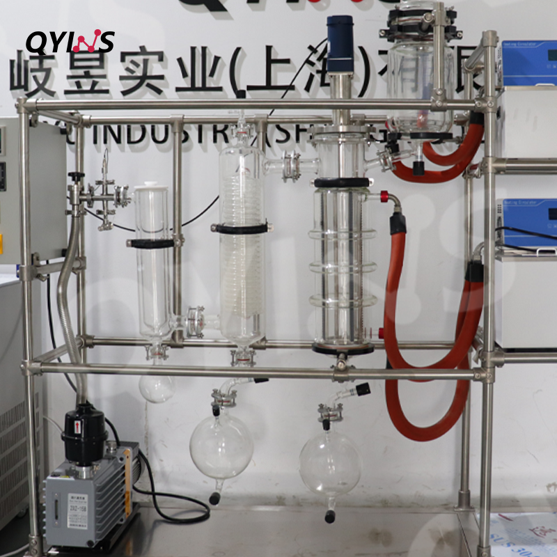 玻璃薄膜蒸發(fā)器是一款在化工、制藥、食品等行業(yè)中發(fā)揮關(guān)鍵作用的蒸發(fā)設(shè)備,憑借其獨(dú)特的設(shè)計(jì)與性能優(yōu)勢(shì),備受用戶(hù)青睞。物料經(jīng)進(jìn)料口進(jìn)入蒸發(fā)器后,刮板迅速將其刮成均勻的薄膜,緊密貼合在加熱的筒體內(nèi)壁。由于液膜極薄,傳熱面積大幅增加,物料在短時(shí)間內(nèi)便能吸收大量熱量而迅速蒸發(fā)。
