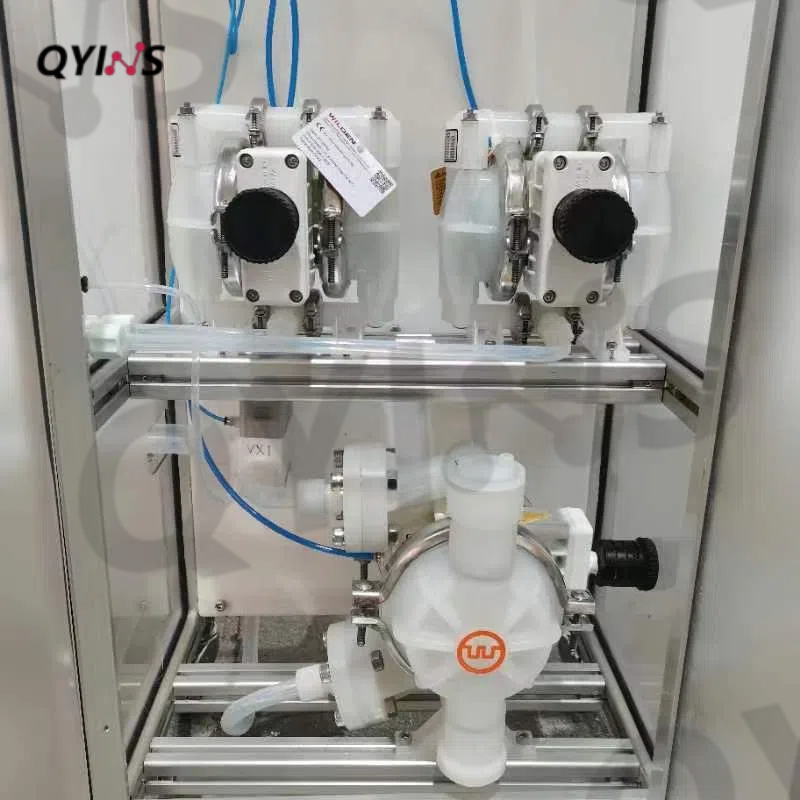 選用氣動(dòng)隔膜泵實(shí)現(xiàn)半自動(dòng)進(jìn)出料,提高生產(chǎn)效率,減少人工操作的時(shí)間和精力高。并且氣動(dòng)隔膜泵不使用電力作為動(dòng)力源,特別適用于易燃易爆的環(huán)境中。