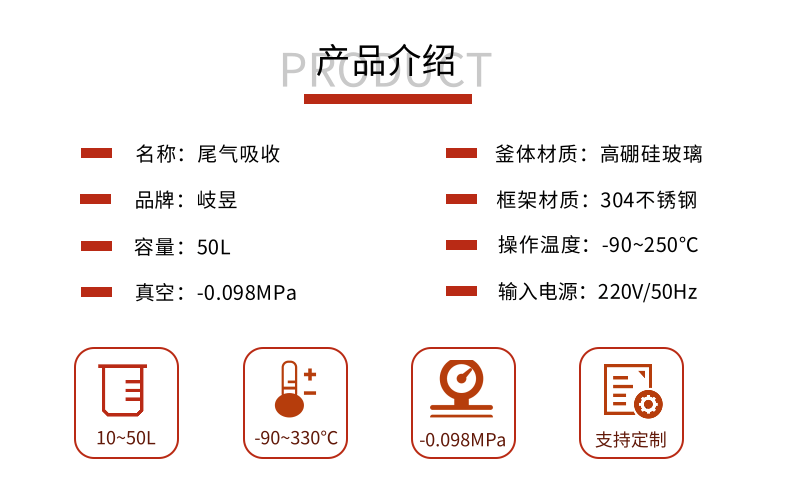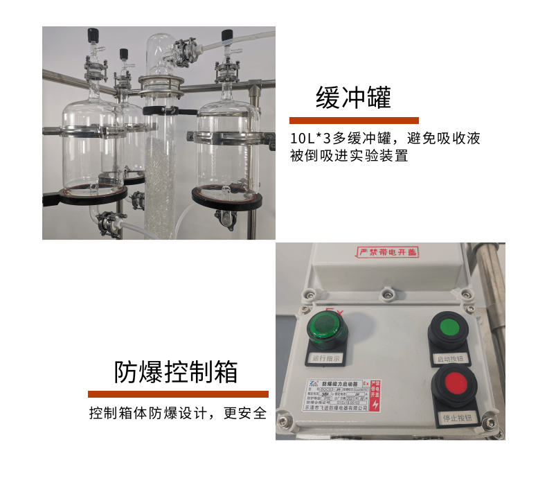 本款防爆尾氣吸收,配備三個防倒吸罐。磁力循環(huán)泵將吸收液從圓底燒瓶打入噴淋頭,從頂部落下。廢氣反方向進(jìn)入吸收柱,兩者充分接觸后,快速達(dá)成凈化。