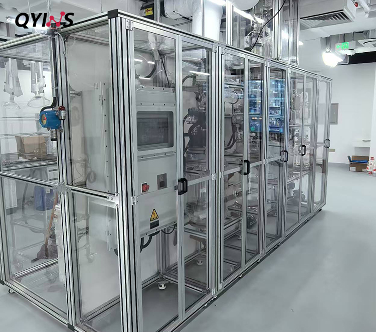 實(shí)驗(yàn)室精餾塔整體解決方案,包含預(yù)反應(yīng)釜,精餾釜,尾氣吸收及配套控溫和真空系統(tǒng),整體撬裝,此套系統(tǒng)PLC控制,在線記錄真空度;控溫溫度的控制和顯示,顯示實(shí)驗(yàn)參數(shù)并自動(dòng)產(chǎn)生時(shí)間曲線,實(shí)驗(yàn)過(guò)程中,可依據(jù)實(shí)驗(yàn)結(jié)果,反向推測(cè)實(shí)驗(yàn)條件。具有過(guò)流、過(guò)載、溫度異常等報(bào)警裝置。