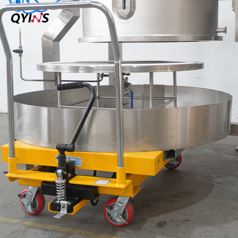 可移動(dòng)升降接料小車+不銹鋼托盤,輔助使用人員快速安裝或拆卸過濾裝置,便于收集固狀粉狀物料。