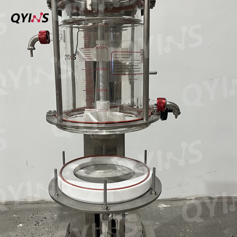 過(guò)濾裝置采用四氟材質(zhì),內(nèi)設(shè)有液體導(dǎo)流槽。篩板(四氟、不銹鋼、鈦材,